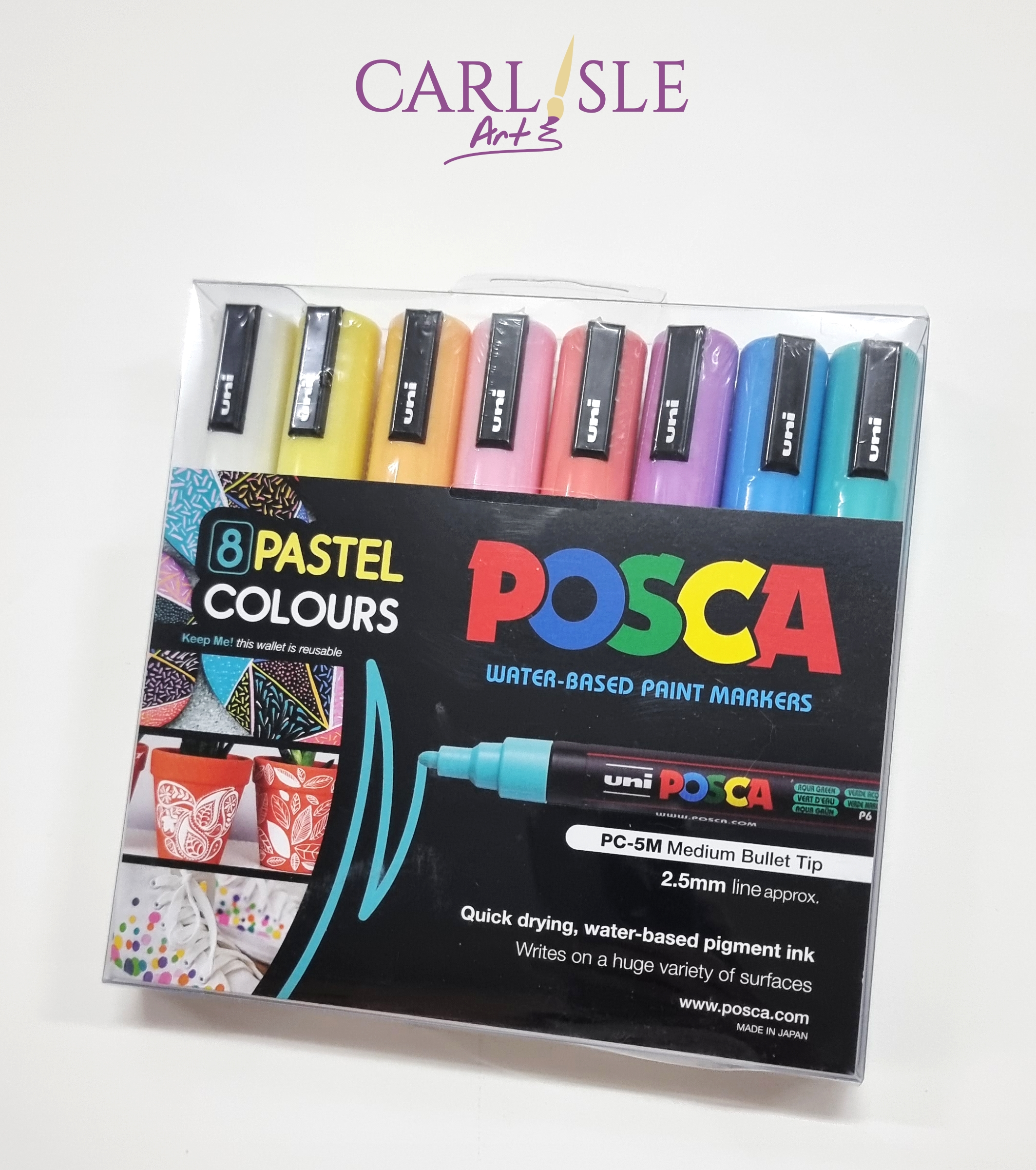 Posca Paint Markers Set of 8 Pastel Colours - 2.5mm Medium Bullet Tip