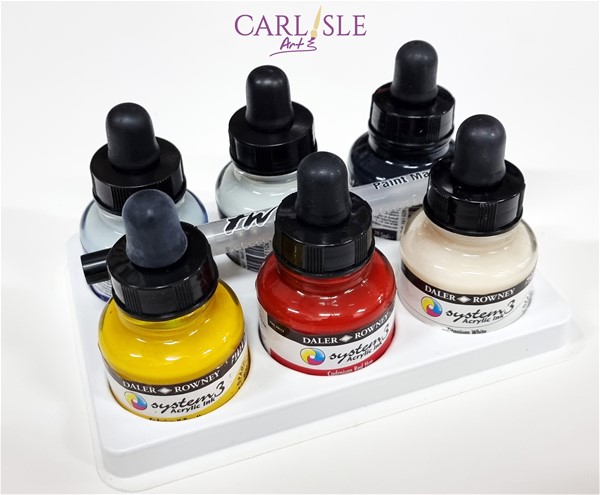 Daler-Rowney System 3 Acrylic Inks are a range of strong and vibrant water-based acrylic inks. The colours are all opaque, and though they can be thinned with water, they are water-resistant once dry. Painters who are used to using System 3 Acrylics or Heavy Body Acrylics will take to the familiar selection of colours easily. They can be mixed with each other and with any other acrylic range.