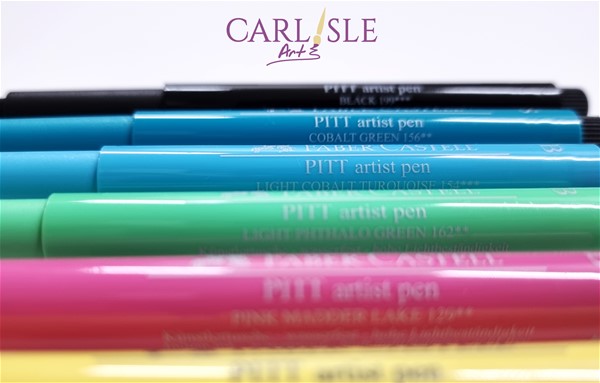 • 4 Pitt Artist Brush Pens. Light Yellow Glaze 104, Pink Madder Lake 129, Light Phthalo Green 162 and Light Cobalt Turquoise 154.