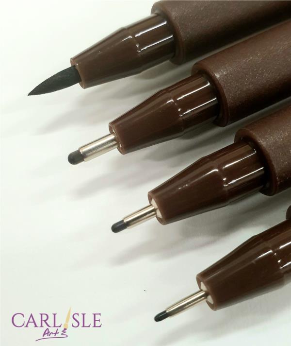 The Pitt Artist pens are designed for ink-based artwork and can be painted over quickly without smudging spreading or blotting as the ink dries rapidly upon contact with paper. They can be used on slightly damped paper to create a brush effect where desired.