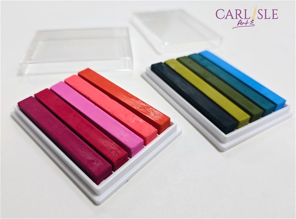 Holbein oil pastels can be applied to almost any ground. They can also be used over finished acrylic and oil paintings and in conjunction with a variety of wet and dry media. Due to the paraffin content and highly refined mineral oil, they will never harden completely. Unlike oil pastels that use vegetable oil, Holbein oil pastels are inert once laid down and will not dry out or crack.