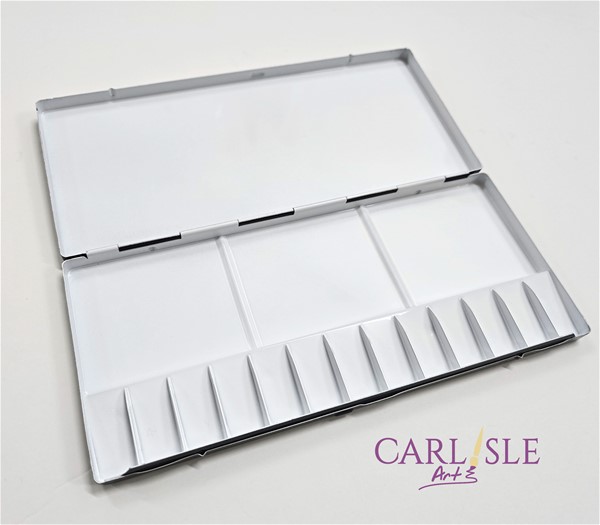 Can be used with a range of paints including oils, acrylics, watercolour or gouache. Made in Korea with a black Japanned finish and a white enameled finsh inside the palette.