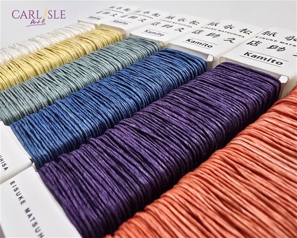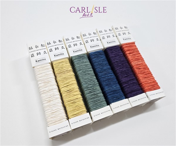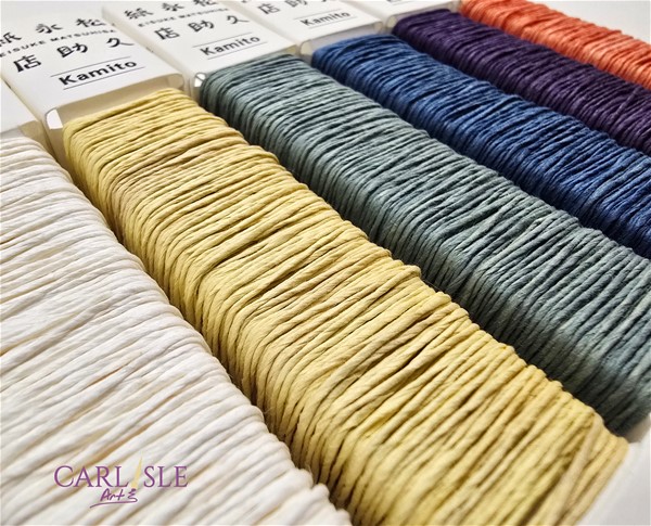 Kamito Paper Threads are made of traditional Japanese washi papers, made but cutting the paper into thin pieces which are then twisted into thread. The paper thread is naturally dyed with plant or vegetable dyes.