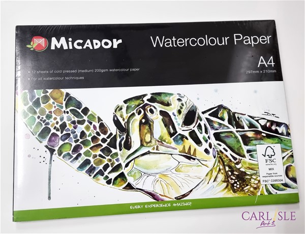 • Micador watercolour paper pad, 12 sheets of 200gsm cold pressed paper