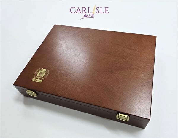 Wooden set with 11x 35 ml tubes, 2 brushes, palette plug and drawing charcoal